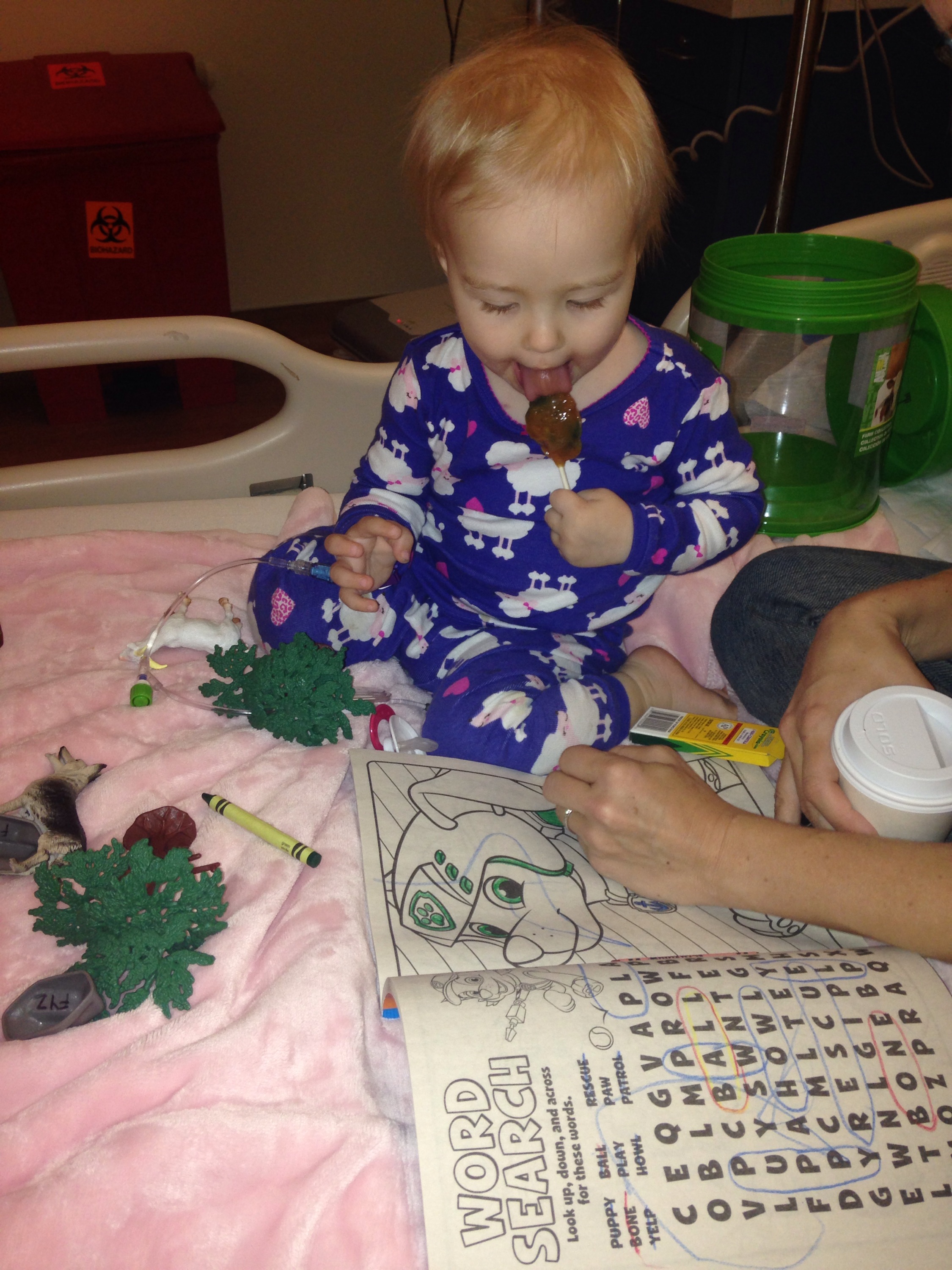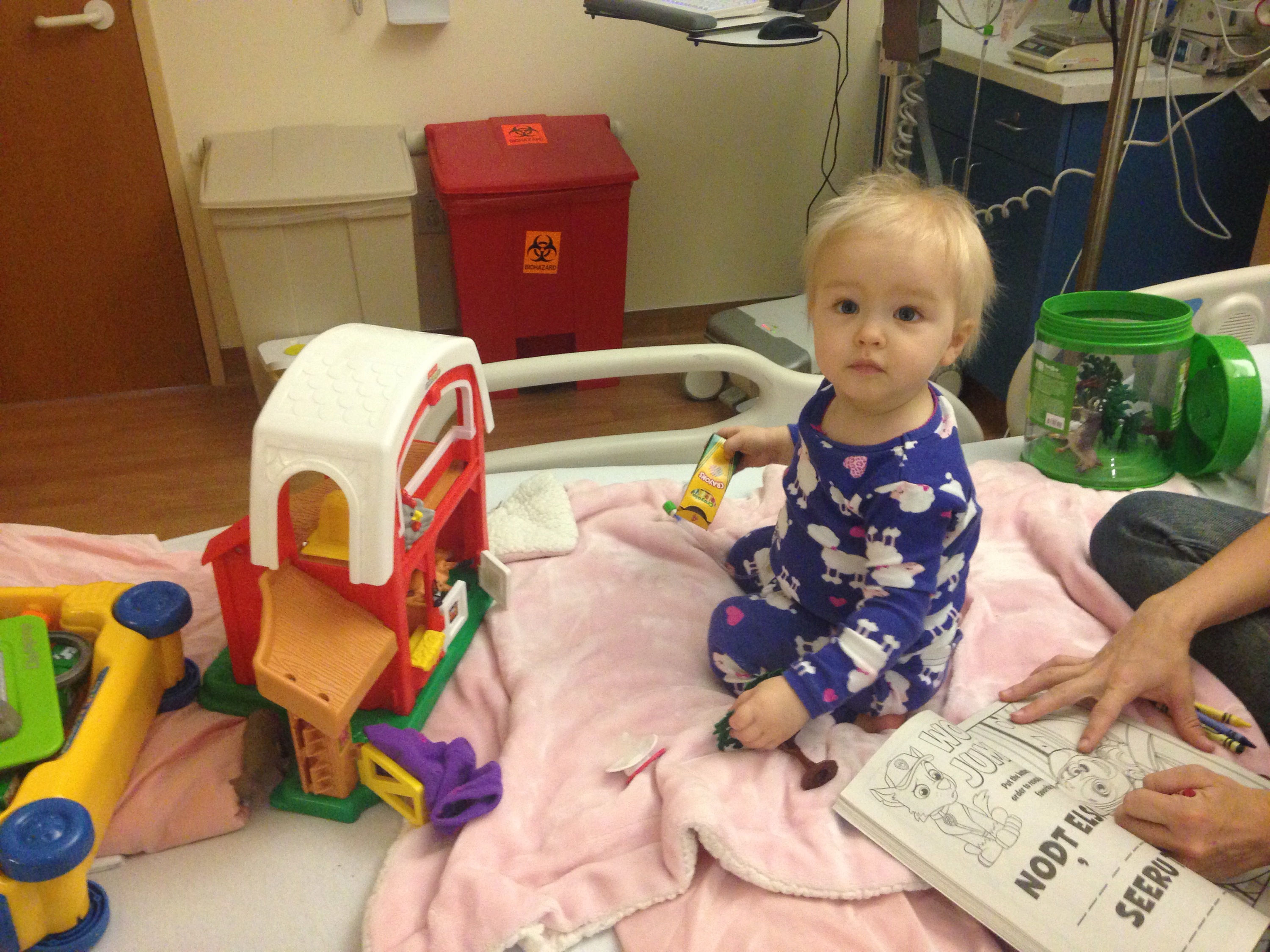 We didn’t have any toys from our home because of the unexpected ER visit- so childlife brought toys!