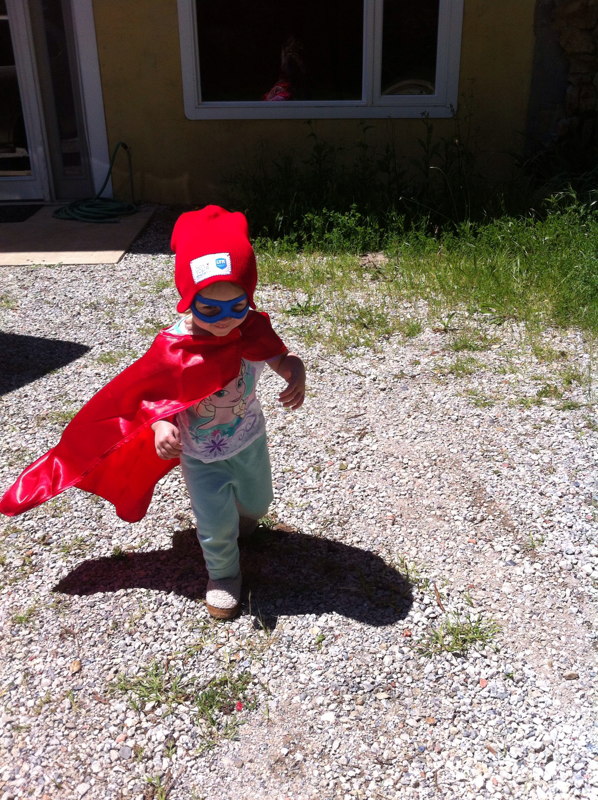 Poppa went with us today which was special and it was super hero day at LPCH so Reba got a cape, hat and mask.