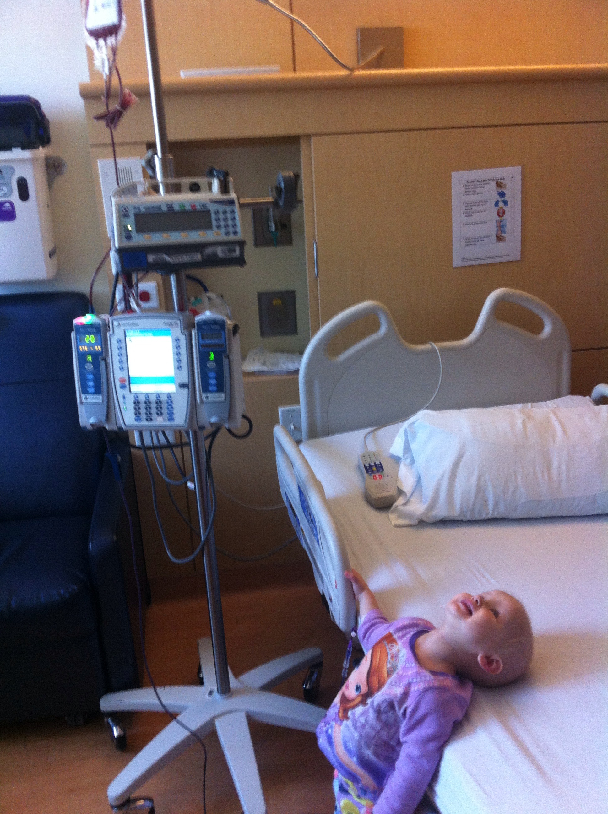 Today (5/26/16) we were back at LPCH for a blood transfusion. Reba’s hemoglobin dropped down to 7.1, so they decided to transfuse so we would be set for the long weekend. Transfusions typically take us 5-6 hours plus about 4 hours of total driving time, so another long day for us. Reba really perked up after getting her blood, and has a lot more color now too.