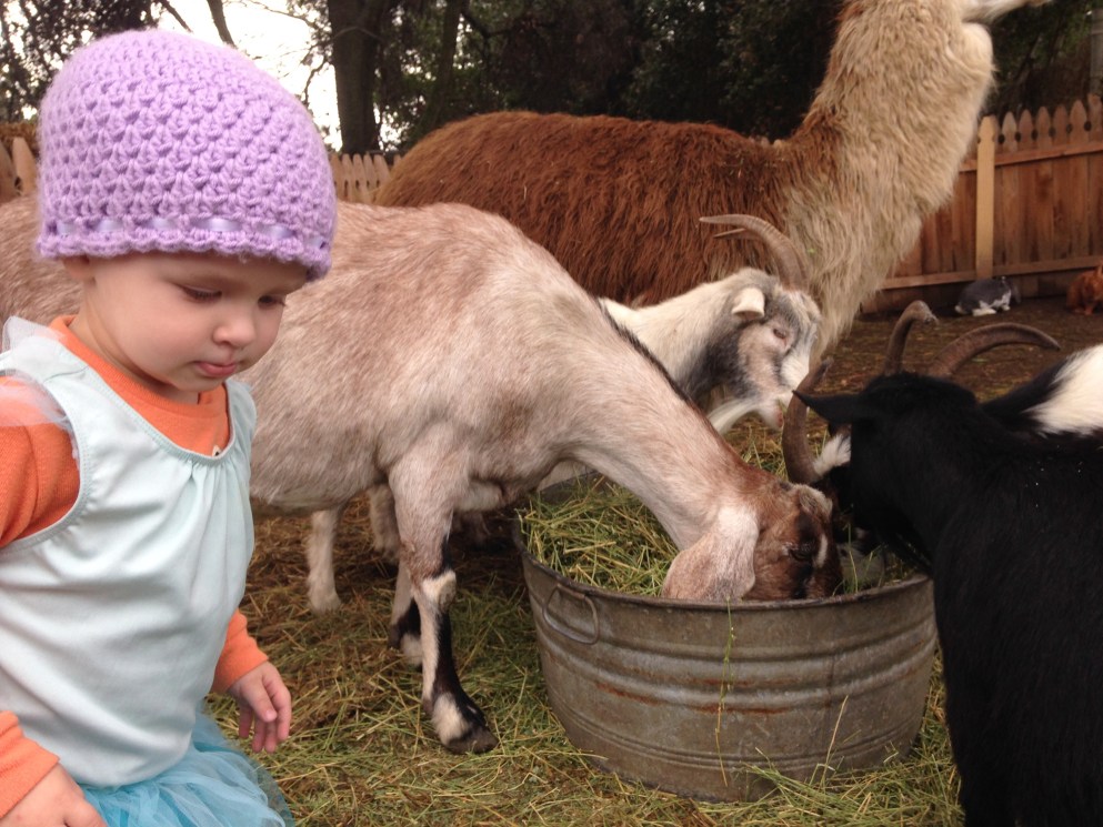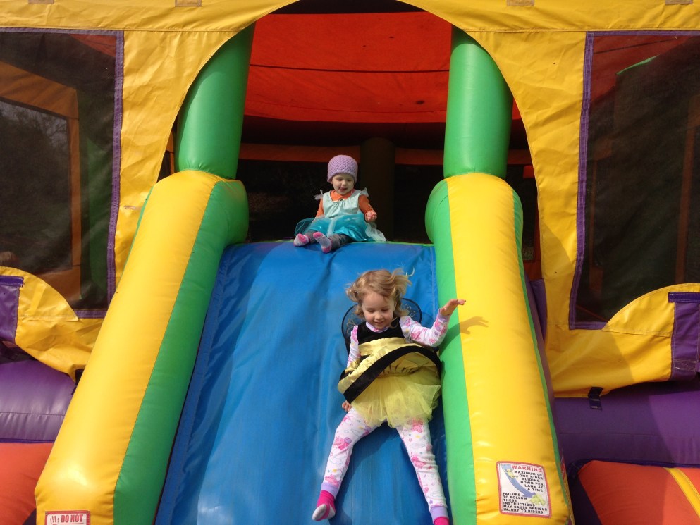 Because it is Halloween the girls dressed up and after we went to a pumpkin patch that had a petting zoo and a bouncy house!