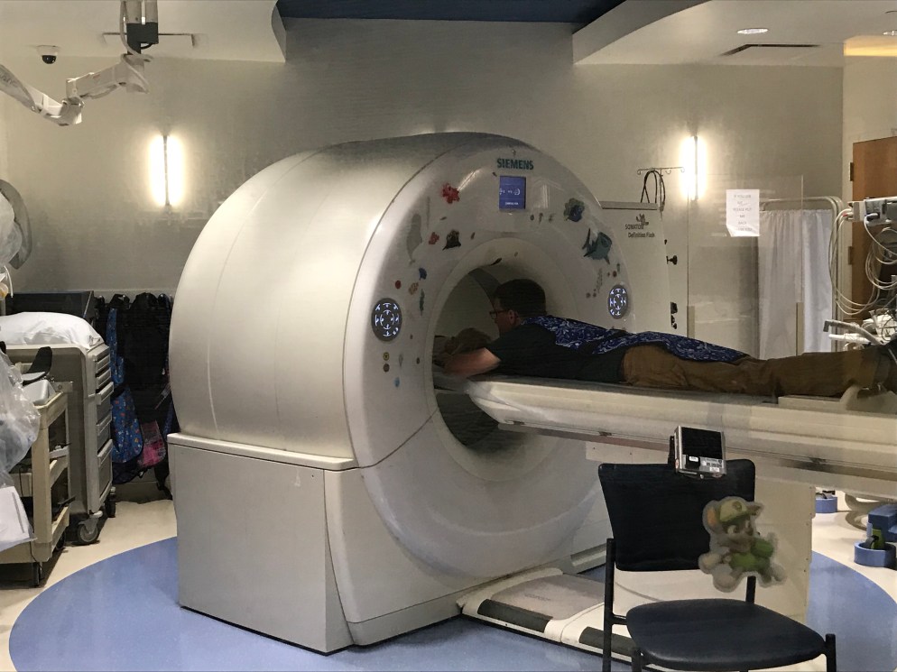 Today was also a CT scan and Reba did it without anesthesia- this is a first! She did fantastic. Nik was able to lay on the table with her and hold her hands (I can’t because I’m pregnant). Reba doesn’t usually get chest CT scans but they saw something (hopefully nothing!) on the last MRI they wanted to take a closer look.