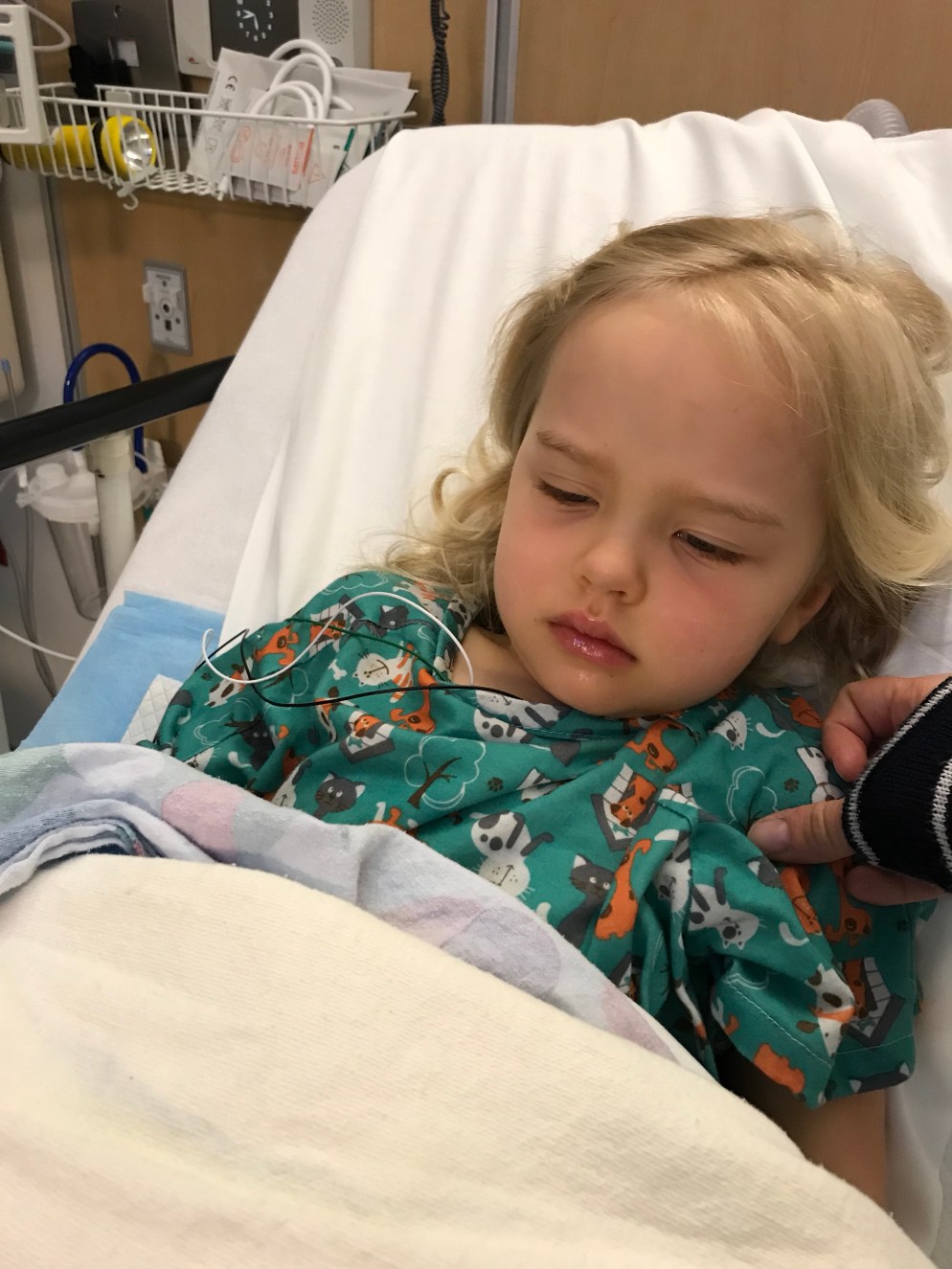 Second hiccup was they gave her 5 additional drugs while under anesthesia which was not part of the plan. They gave her propofol (which we were expecting) Fentanyl, anesthesia gas (which makes her nauseous), zofran (to help with nausea) Tylenol (which I’m fine with) and predadex, which I’m still not sure what it is, some kind of additional sedative and according to the anesthesiologist an alpha 1 agonist which slows heart rate. This added insult to injury. I was told she would only be getting the propofol. She was also given a breathing tube when they told me that wouldn’t be necessary today. So when she woke up she had a bad cough and sore throat.